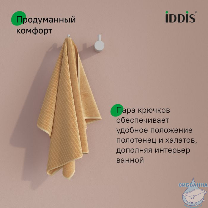 Набор из двух одинарных крючков Petite в белом матовом цвете позволит с комфортом разместить банные полотенца и халаты, дополнив места для хранения в ванной.