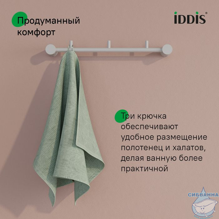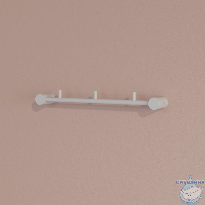 Планка с тремя крючками Petite в белом матовом цвете позволит с комфортом разместить несколько банных полотенец и халатов, дополнив места для хранения в ванной.