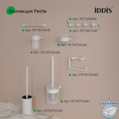 Petite – базовая коллекция функциональных аксессуаров для ванной с минималистичным, спокойным дизайном и округлыми формами, что делает её универсальным украшением любого современного санузла. Аксессуары в универсальном матовом хроме преобразят интерьер, сделают его завершённым и гармоничным. Идеально дополнят смесители IDDIS® из коллекций Aiger по цвету и форме.