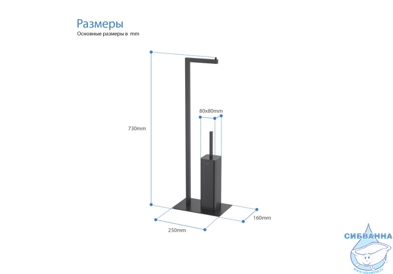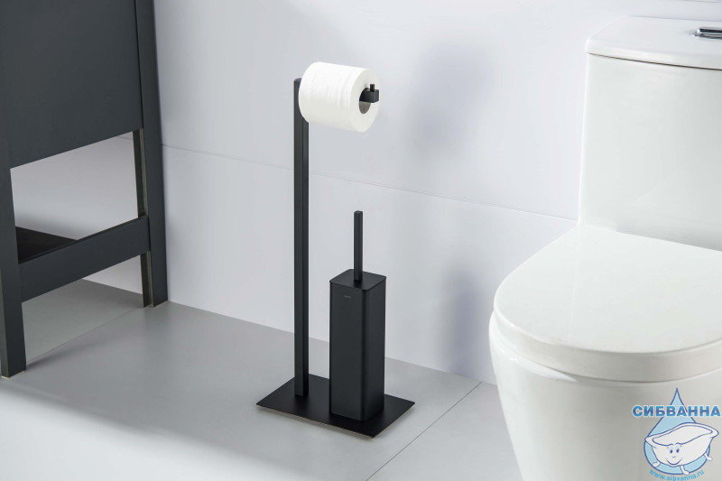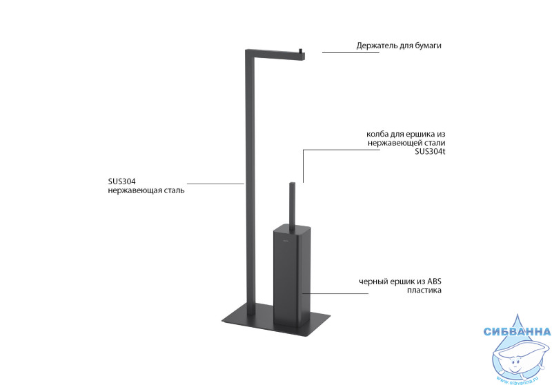 Комплект поставки • Ершик с крышкой • Емкость для ершика • Держатель для туалетной бумаги • Напольная подставка • Монтажный комплект