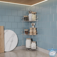 Современный дизайн коллекции Grid поможет сделать интерьер более персональным: угловая полка будет отлично смотреться в разных стилях интерьера, как ванной, так и кухни. Целых три яруса позволят эффективно использовать вертикальное пространство: для эстетичного хранения предметов первой необходимости как крупного, так и мелкого размера. Лаконичная полка Grid – это вместительный органайзер с двумя интегрированными в бортик крючками: на них будет удобно хранить дополнительные кухонные или банные аксессуары.