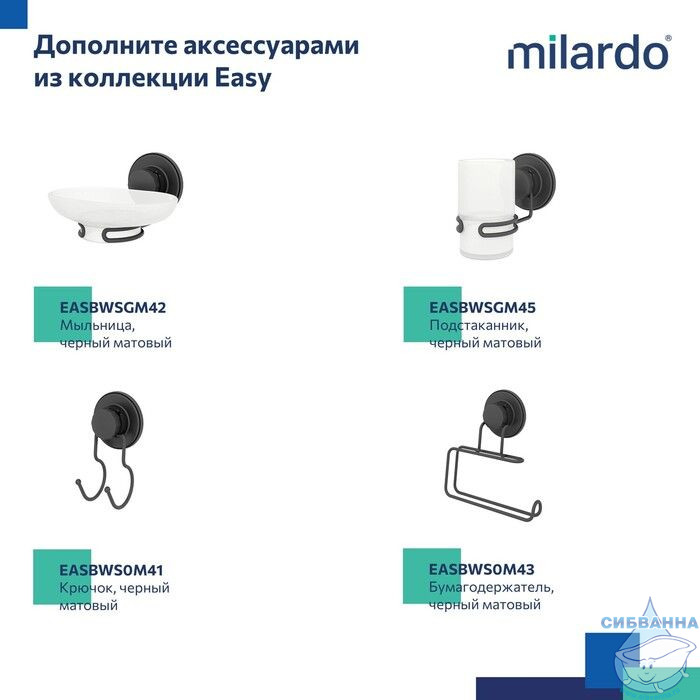 • Гарантия на аксессуары для ванной комнаты Milardo® – 1 год.