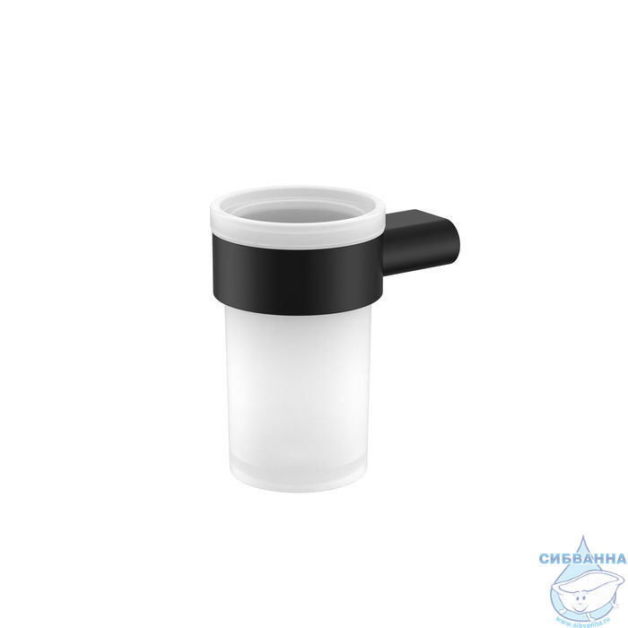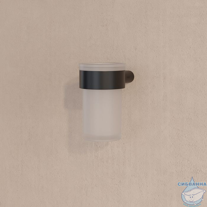 Стильный стакан Petite из матового белого стекла в держателе чёрного матового цвета.