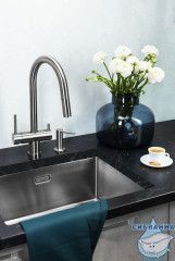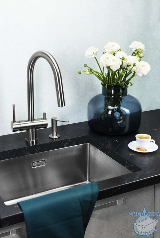 Оттенок и дизайн дозаторов идеально сочетается с кухонными мойками и смесителями OMOIKIRI.