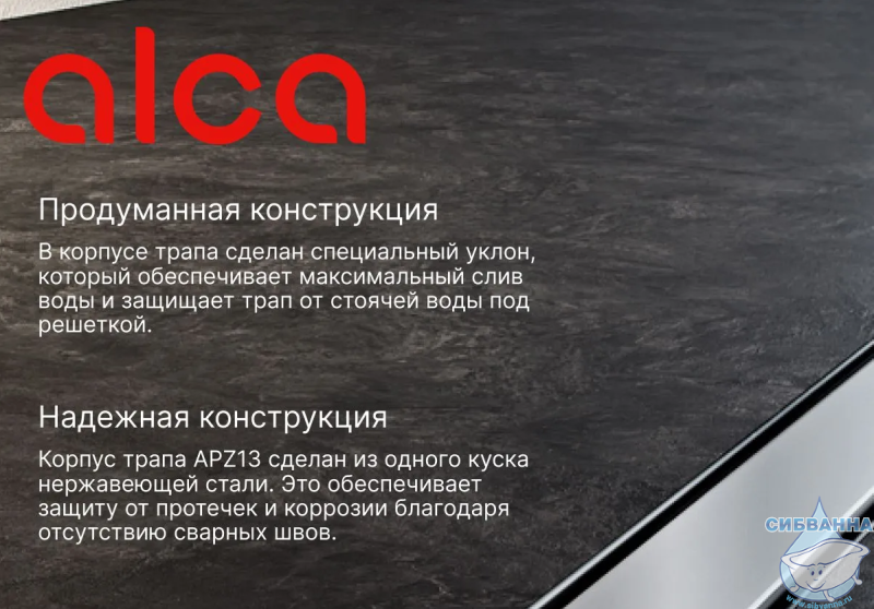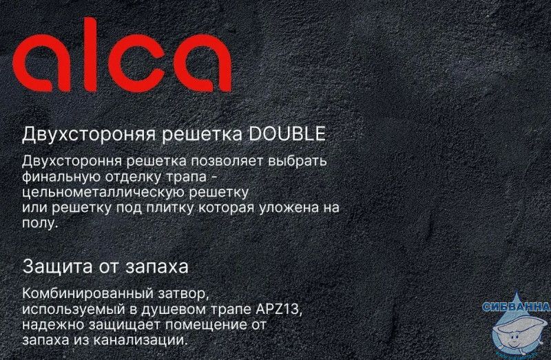 Душевой трап (лоток) AlcaPlast APZ13-DOUBLE9 с решёткой и опорами,  — это высококачественное и надёжное решение для вашей ванной комнаты. Он изготовлен из желоба из одного фрагмента нержавеющей стали толщиной 1,5 мм, AISI 304, DIN 1. 4301. Этот материал обработан методом травления и пассивации, а также прошёл электрохимическую полировку, что обеспечивает ему прочность, долговечность и устойчивость к коррозии. Для качественной гидроизоляции используются самоклеящиеся ленты, которые гарантируют герметичность и защиту от протечек. Уклон внутренней части желоба обеспечивает эффективный отвод воды, предотвращая её застой и образование неприятных запахов. Двусторонняя решётка DOUBLE предлагает вам выбор: вы можете использовать полную решётку или решётку, подходящую для укладки плитки. Это позволяет адаптировать душевой трап к любому дизайну ванной комнаты и подчеркнуть её стиль. Душевой трап (лоток) AlcaPlast APZ13-DOUBLE9— это не просто функциональное, но и эстетичное решение для вашей ванной. Он сочетает в себе высокое качество материалов, надёжность и удобство использования, делая вашу ванную комнату комфортной и стильной.
