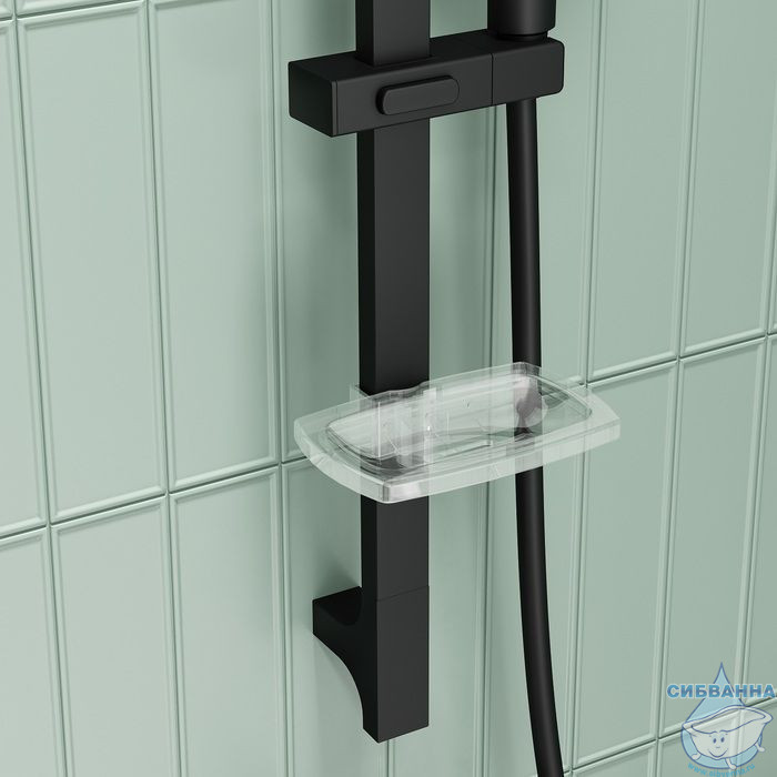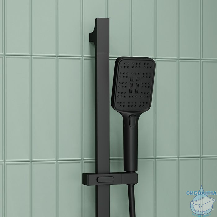 Душевой комплект Agua в трендовом черном цвете благодаря прямоугольным формам отлично дополнит смеситель для ванны в тон и современный интерьер.
