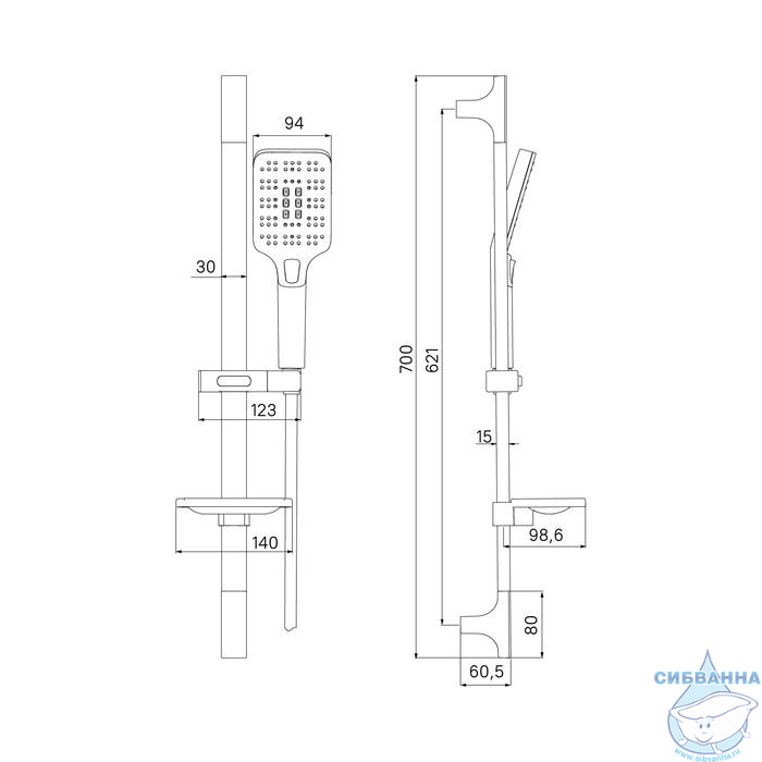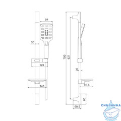 Гибкий гладкий шланг из ПВХ (1,5 м) с функцией защиты от перекручивания и мыльница из прозрачного пластика в комплекте.
