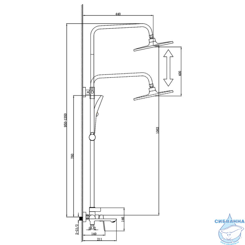 • Верхний душ да
