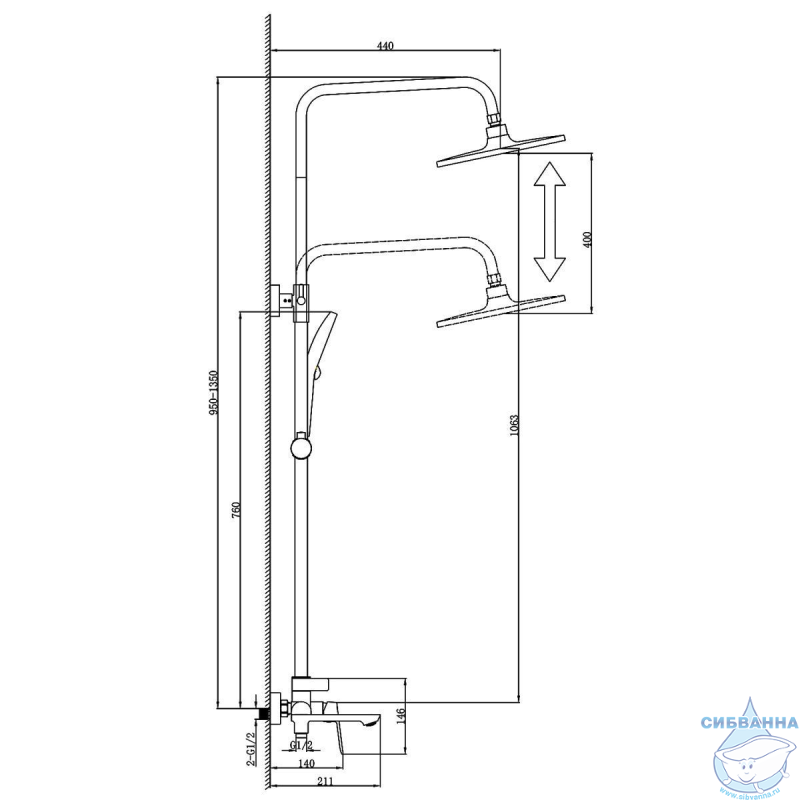Душевая система Azario Alanti с тропическим душем, керамический картридж, шланг 150 см, (AZ-K2332)