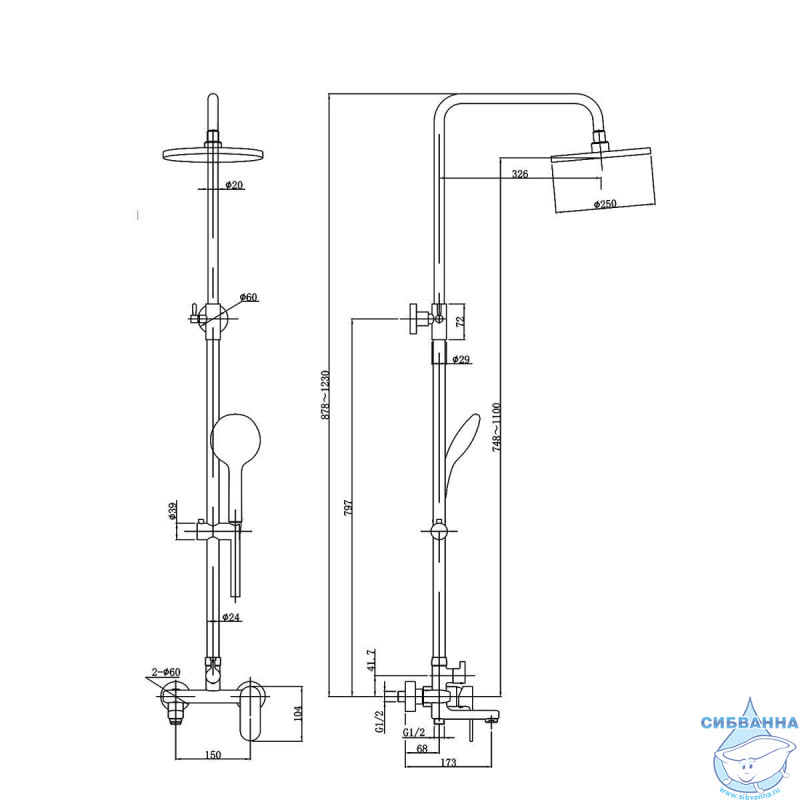 Душевая колонна Azario ARIZONA со смесителем для ванны, с поворотным изливом, круглая, (AZ-20)