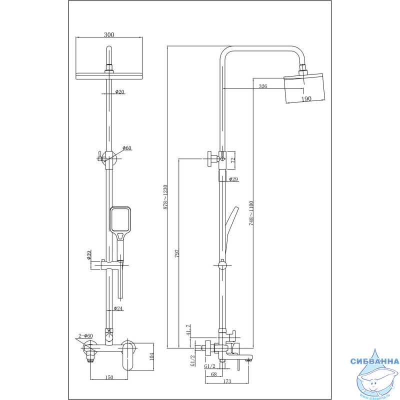 Душевая колонна оснащена смесителем для ванны, который обеспечивает комфортное и плавное управление температурой воды. Рычажное управление смесителем делает его простым и удобным в использовании.