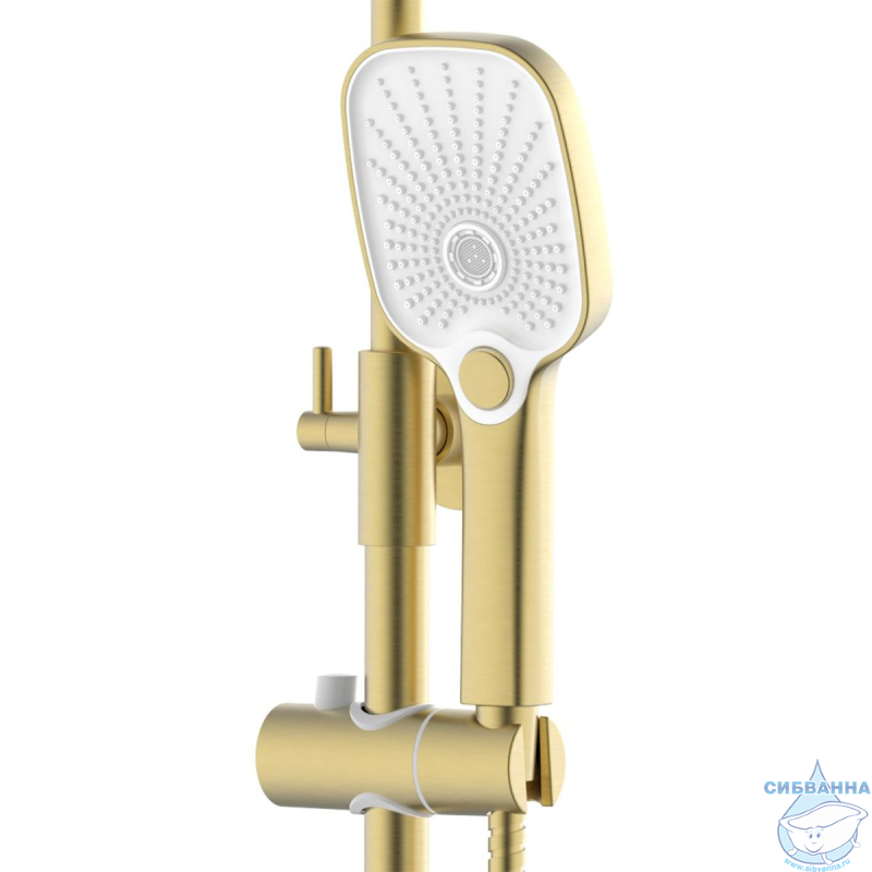 Душевая система Azario Lursy с квадратным тропическим душем, керамический картридж, шланг 150 см, золото матовое (AZ-K2349MG)