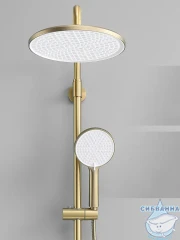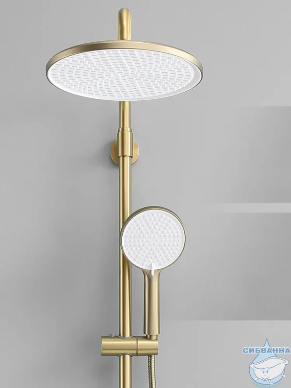 Золотистый цвет душевой системы придает ей роскошный и элегантный вид. Золотистый сатин - это оттенок золота, который выглядит современно и стильно. Покрытие золотом придает товару роскошный вид и делает его долговечным.