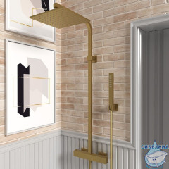 Яркий представитель коллекции DAX-R – душевая система с термостатом. Форма с геометрическими акцентами, нешаблонные цвета покрытия в сверхпрочном исполнении PVD и особый стиль помогут оформить душевую зону. Термостат защищает от перепадов температуры воды. Изысканное покрытие золотого цвета или черный цвет в матовой или глянцевой текстуре – оптимальное решение точно найдется!