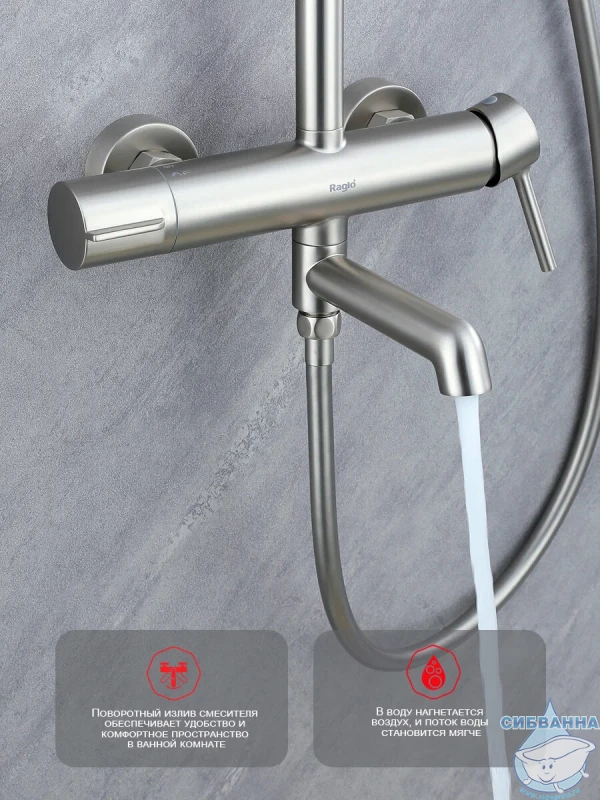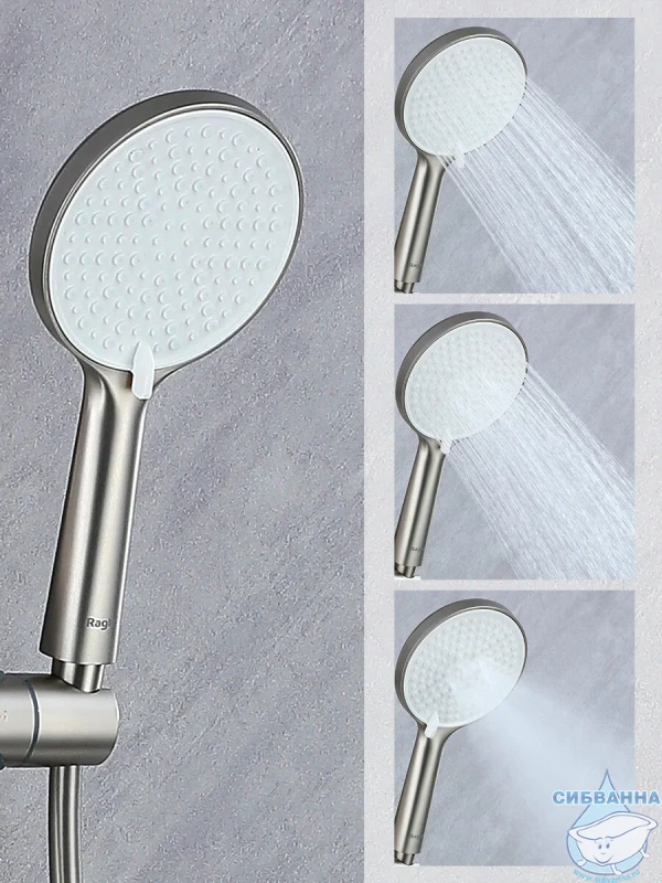 Душевая система Raglo R20.24.. Характеристики: Материал: латунь. Управление: однорычажное. Механизм: керамический картридж. Излив: поворотный. Аэратор. Регулируемая по высоте душевая штанга: 1130-1480 мм. Форма верхнего душа: круглая. Диаметр верхнего душа: 250 мм. Регулируемый по высоте и наклону держатель ручного душа. Форма ручного душа: круглая. Количество режимов струи ручного душа: 3. Отверстия для монтажа: 3. Стандарт подводки: G 1/2. Монтаж: на стену. В комплекте поставки: Смеситель. Верхний душ. Ручной душ. Душевой шланг. Душевая штанга.