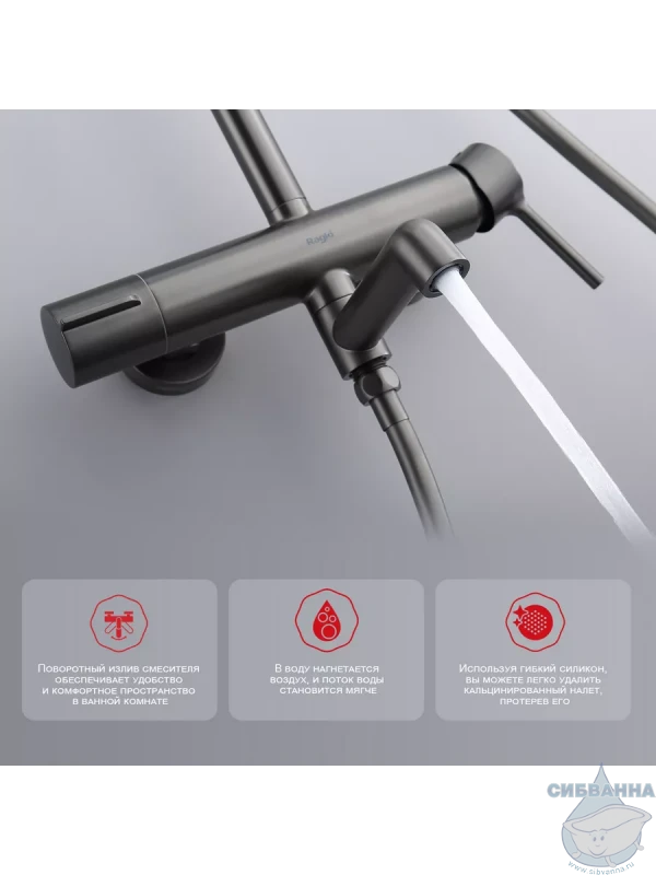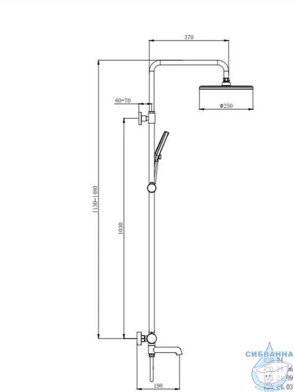 Регулируемая по высоте душевая штанга: 1130-1480 мм.