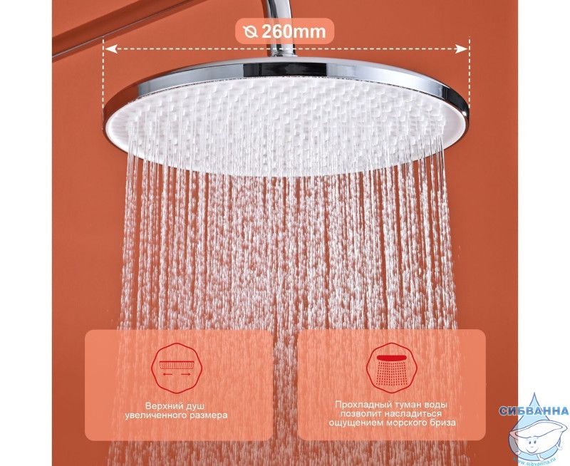 Диаметр верхнего душа: 260 мм.