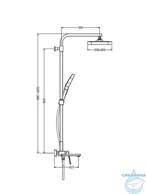 Регулируемая по высоте душевая штанга: 1087-1655 мм.