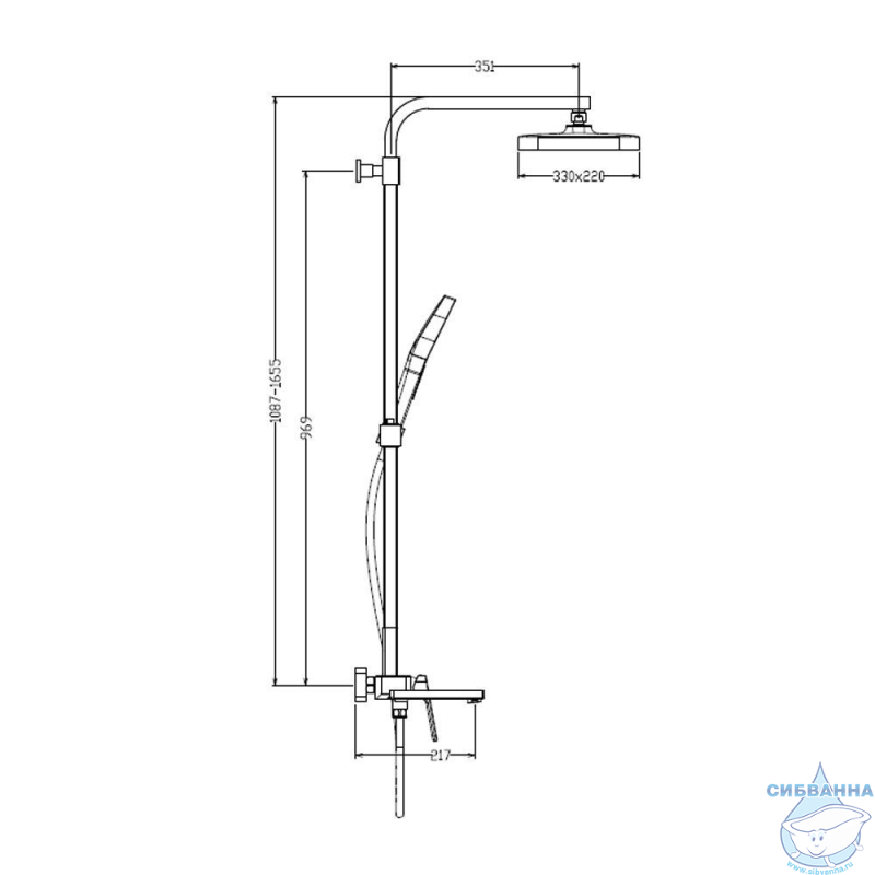 Регулируемая по высоте душевая штанга: 1087-1655 мм.