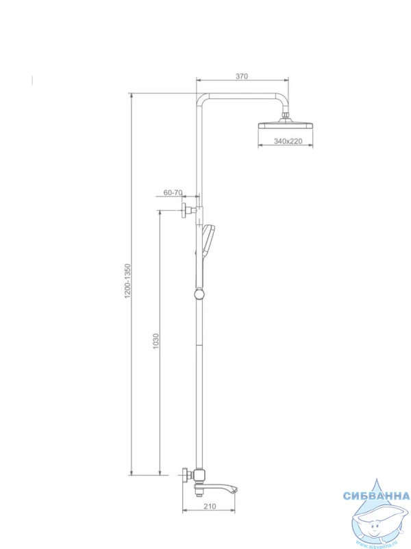 Регулируемая по высоте душевая штанга: 1200-1350 мм.