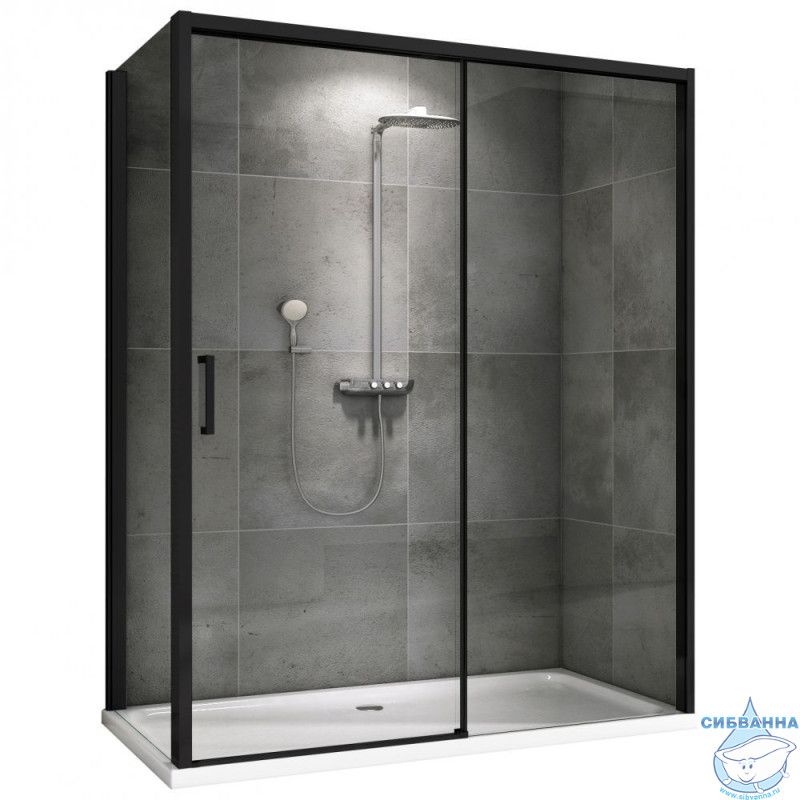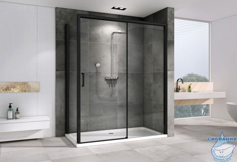 Цвет профиля: черный. Материал профиля: алюминий. Материал полотна двери: закаленное стекло. Исполнение полотна двери: стекло прозрачное, толщиной 8 мм. Количество секций двери: 1. Конструкция дверей: раздвижная. Форма: прямоугольная. Высота 200 см.