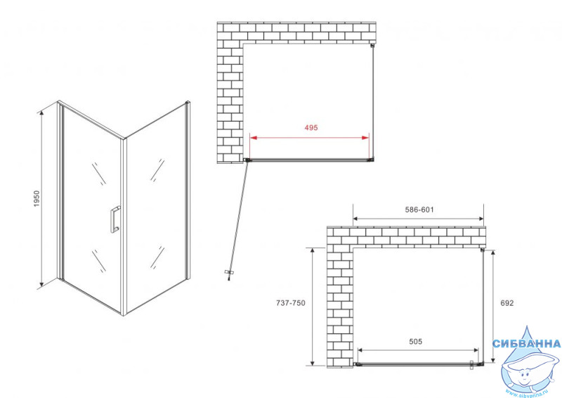 Высота 195 Количество дверей 1 Комплектация металлическая ручка Конструкция дверей распашная Монтаж в угол Поддон в комплекте нет, приобретается отдельно Стекло матовое Тип поддона низкий Толщина стекла, мм 6