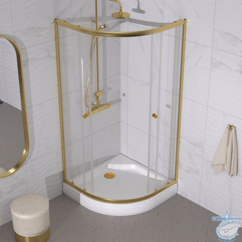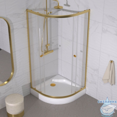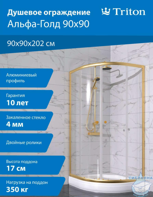 Душевое ограждение Тритон Альфа 90x90 профиль золото, стекло прозрачное Щ0000073921 (с поддоном)