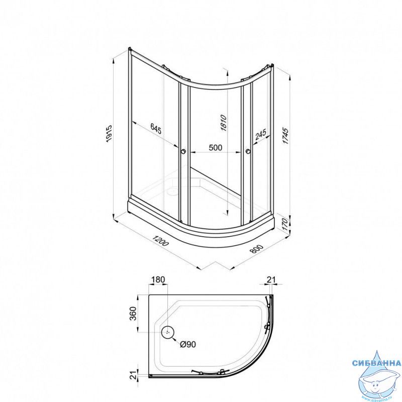 Поддон душевой со съёмным экраном