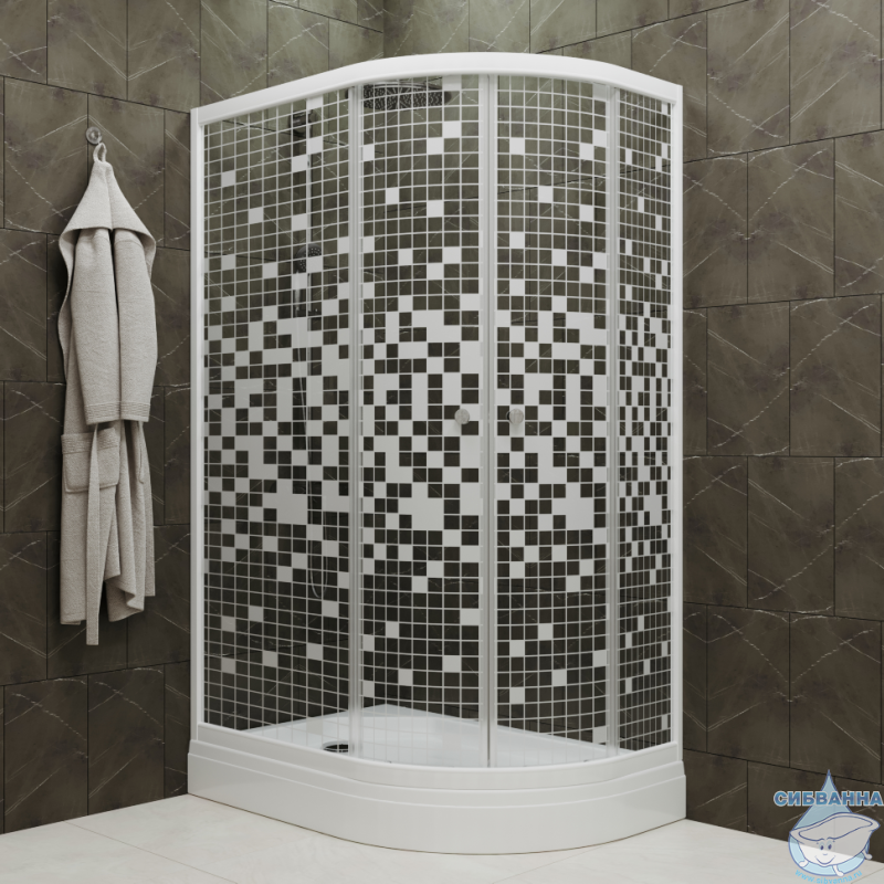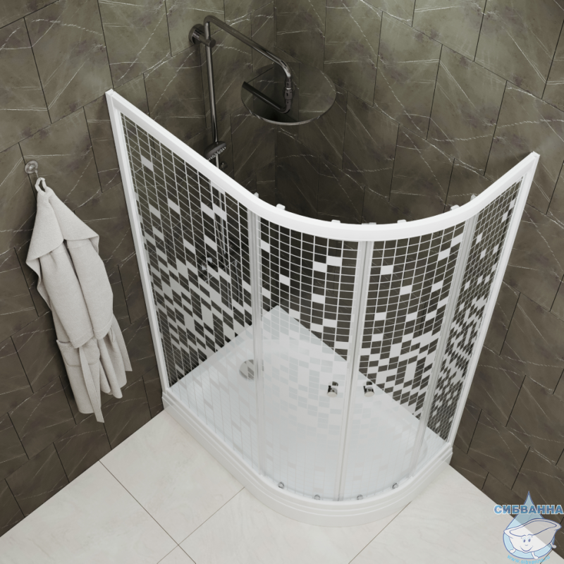 Душевое ограждение Тритон Коралл А L 120x80 профиль белый, стекло мозайка Щ0000061780 (с поддоном)