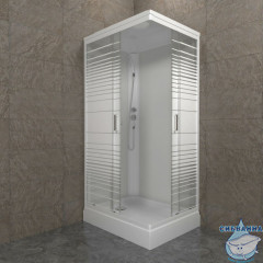 Состав поставки : Комплект передних стёкол Комплект задних стёкол Комплект направляющих Поддон душевой со съёмным экраном Каркас для поддона стальной Центральная душевая панель (Стойка) Крыша Смеситель с лейкой и тропическим дождем Сифон (без гофры)