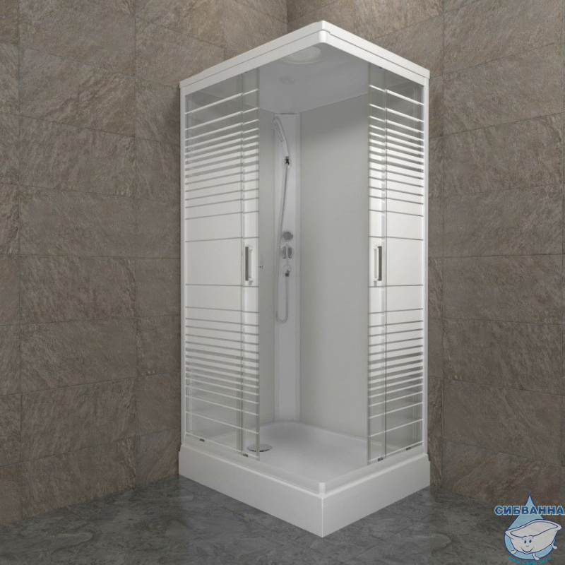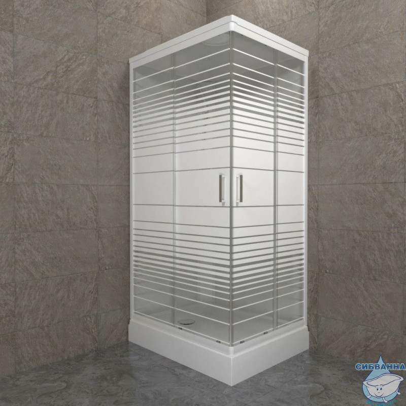 Душевое ограждение Тритон Квадро 100x80 профиль белый, стекло полосы Щ0000064615 (с поддоном)