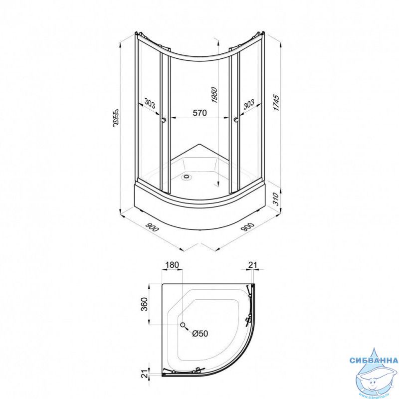 Душевое ограждение Тритон Лайт В 90x90 профиль белый, стекло лайт Щ0000061813 (с поддоном)