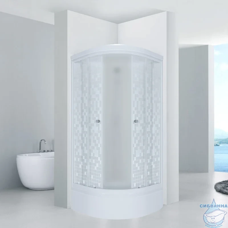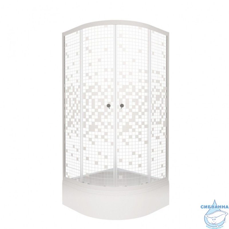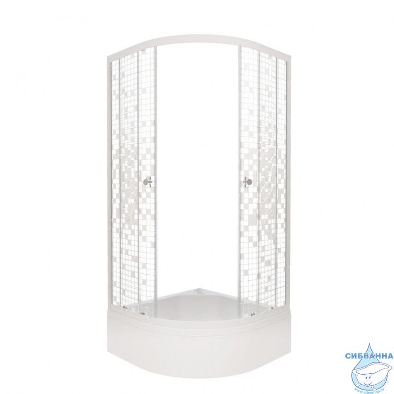 Душевое ограждение Тритон Стандард В 90x90 профиль белый, стекло мозаика Щ0000061809 (с поддоном)