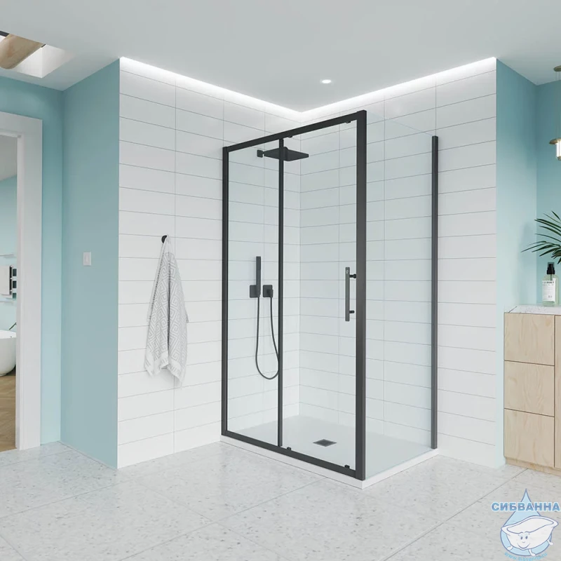 Душевое ограждение Veconi Эво 130x90 профиль черный, стекло прозрачное E1-SP-B-13090-01-C9 (без поддона)
