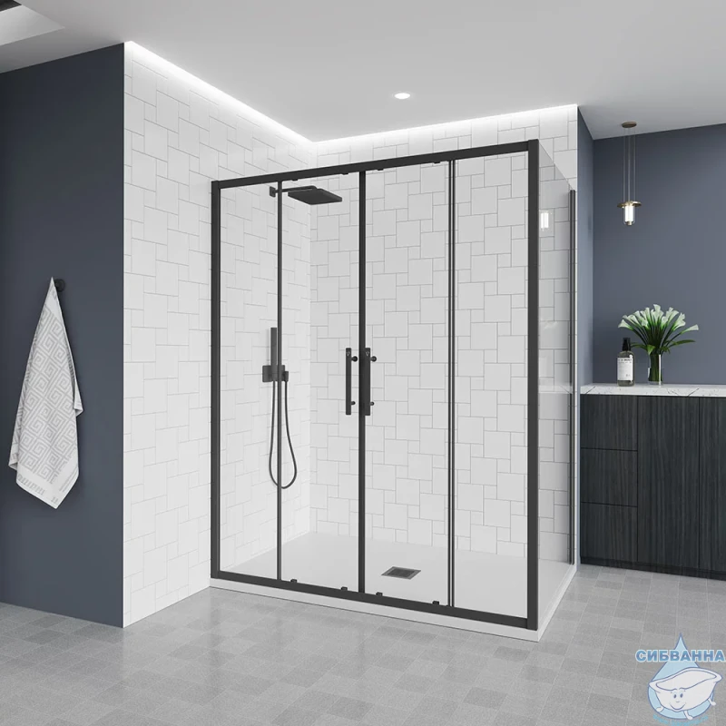Душевое ограждение Veconi Эво 180x70 профиль черный, стекло прозрачное E4-SP-B-18070-01-C9 (без поддона)