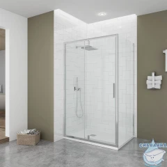 Душевой угол распашной. Дверь открывается внутрь и наружу. Такая конструкция дверей позволяет сэкономить пространство. Данная модель — это отличное решение для ванных комнат с минимальной площадью. Душевой угол состоит из распашной двери Ottimo P20 и боковой панели Ottimo SP.