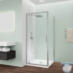 Душевой угол распашной. Дверь открывается внутрь и наружу. Такая конструкция дверей позволяет сэкономить пространство. Данная модель — это отличное решение для ванных комнат с минимальной площадью. Душевой угол состоит из распашной двери
