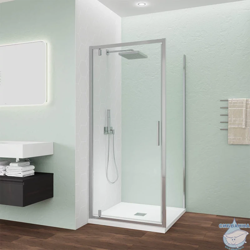 Душевой угол распашной. Дверь открывается внутрь и наружу. Такая конструкция дверей позволяет сэкономить пространство. Данная модель — это отличное решение для ванных комнат с минимальной площадью. Душевой угол состоит из распашной двери