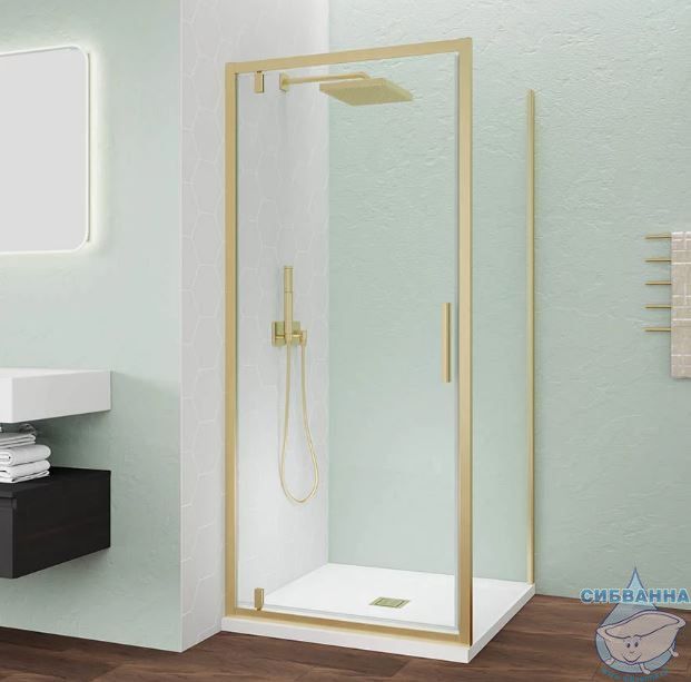 Душевое ограждение Veconi Оттимо 90x80 профиль брашированное золото, стекло прозрачное OP30G-SP-9080-01-C9 (без поддона)