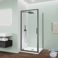 Душевой угол распашной. Дверь открывается внутрь и наружу. Такая конструкция дверей позволяет сэкономить пространство. Данная модель — это отличное решение для ванных комнат с минимальной площадью. Душевой угол состоит из распашной двери Ottimo P30 и боковой панели Ottimo SP.