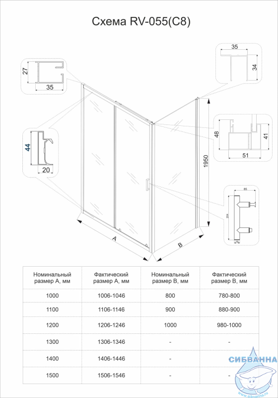 Душевой угол раздвижной прямоугольный