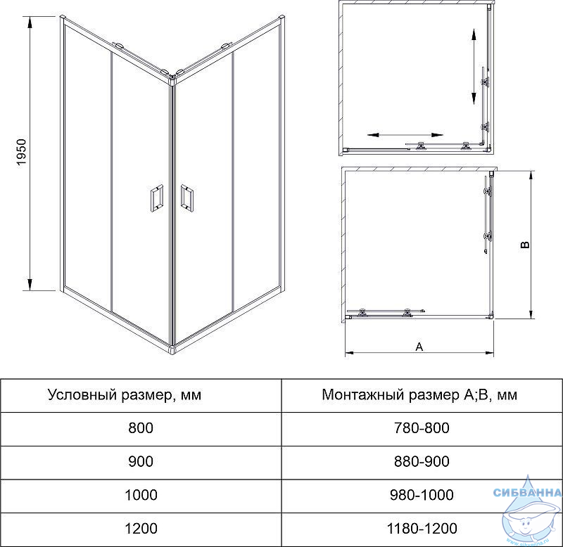 В комплекте поставки: душевой уголок (профиль, стекла, фурнитура).