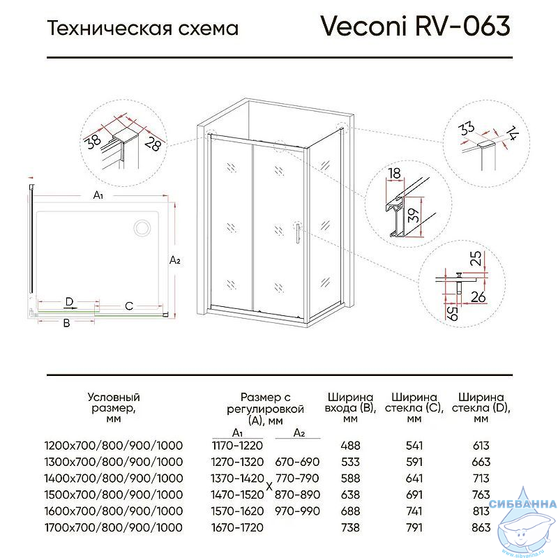 Прямоугольный душевой уголок Veconi Rovigo RV-064 состоит из раздвижной двери VN-63 и боковой панели KP-02. Поверхность душевого уголка представляет собой закаленное стекло толщиной 6 мм с покрытием Easy Clean. Данное покрытие защищает поверхность от разводов, сокращает появление известкового налета и загрязнений на поверхности изделий. Герметичное закрытие дверей, которые устанавливаются на регулируемые стальные ролики, обеспечивается магнитными уплотнителями. Возможность установки одной или двух боковых панелей Veconi KP-02, образуя Г-образный или П-образный уголок. Установка дверей является универсальной, что позволяет устанавливать душевой уголок в зависимости от особенностей помещения.