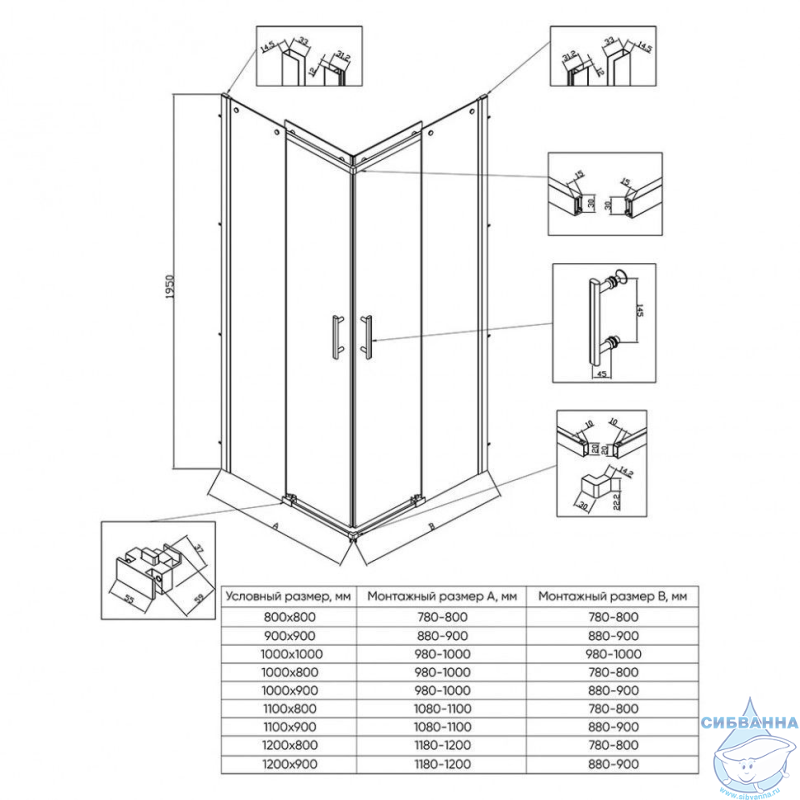 Душевой угол раздвижной.