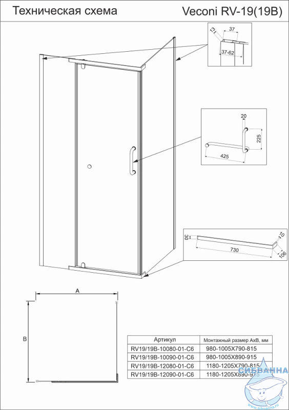 Душевое ограждение Veconi Rovigo 120x90 профиль хром, стекло прозрачное RV19-12090-01-C5 (без поддона)