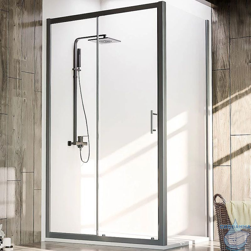 Душевое ограждение Veconi Rovigo 140x80 профиль черный, стекло прозрачное RV072B-14080-01-C4 (без поддона)