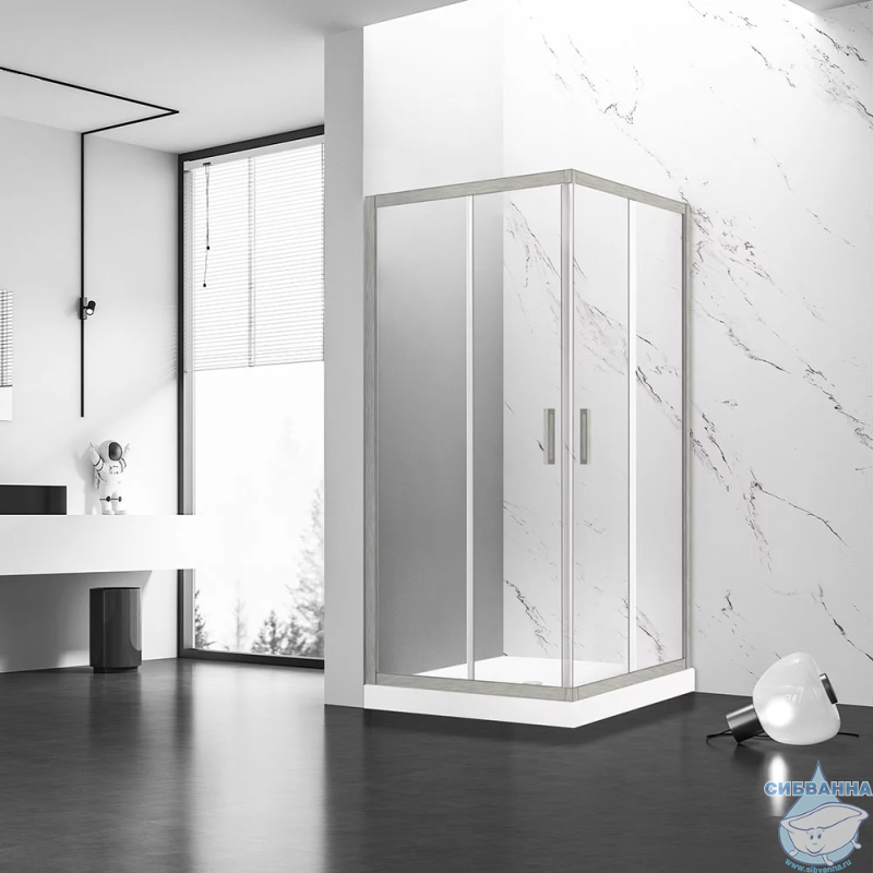 Душевой уголок Veconi Rovigo RV-83 80x80 RV83-80-01-C5 с двумя раздвижными дверьми и универсальной ориентацией.