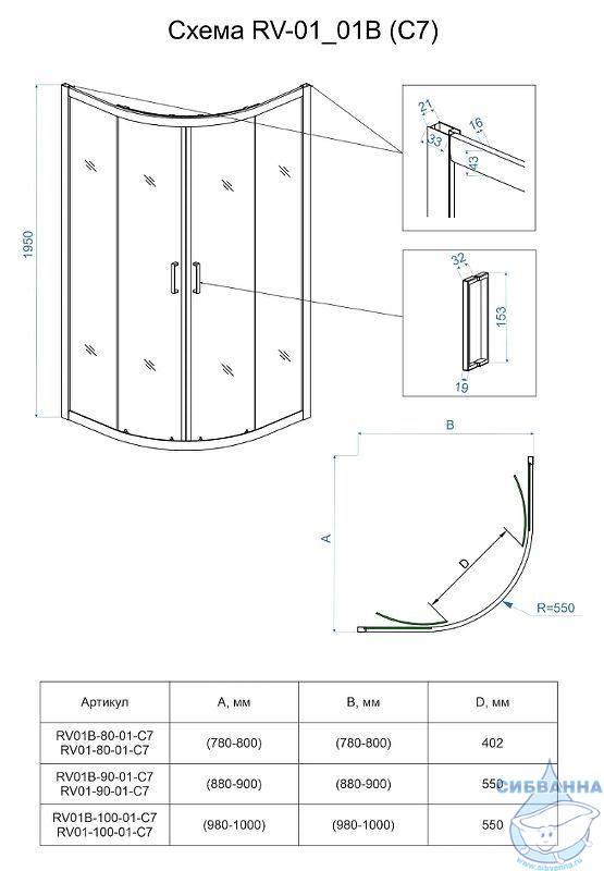 Душевой уголок (профиль, стекла, фурнитура).