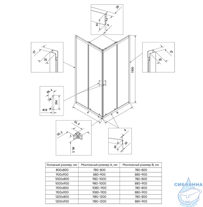 NEW! Душевой угол раздвижной. Две раздвижные двери. Стекло закалённое безопасное 5 мм. Магнитные уплотнители. Профиль анодированный алюминий. Регулируемые двойные ролики. Ручка из нержавеющей стали. Универсальная установка открывания двери. Поддон приобретается отдельно.