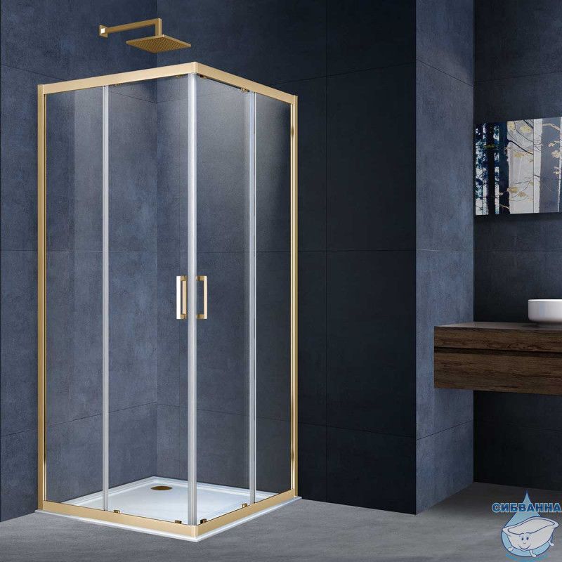 Душевое ограждение Vincea Alpha 100x100 профиль брашированное золото, стекло прозрачное VSS-3AL100CLG